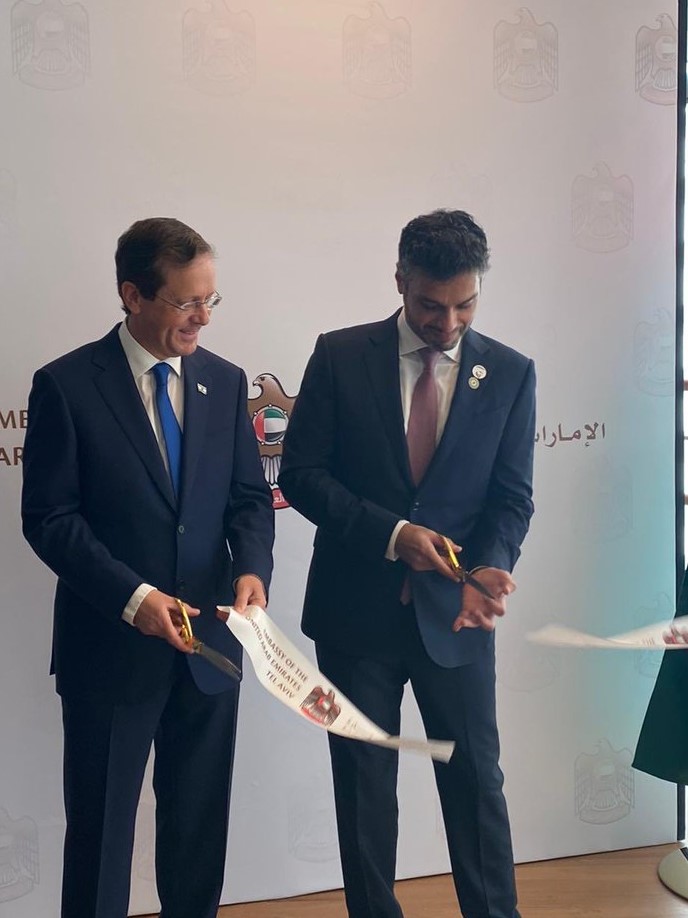 دشنت أبوظبي سفارتها لدى الكيان الصهيوني، اليوم الأربعاء، في مراسم احتفال رسمية، بحضور رئيس دولة الاحتلال يتسحاك هرتسوغ، وذلك في صورة تجسد اكتمال عقد التطبيع مع الاحتلال الغاشم.