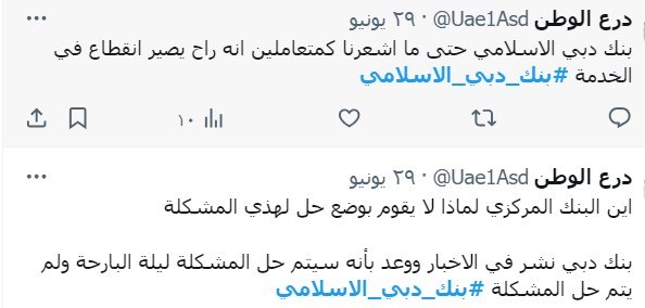 وقال صاحب حساب يدعى درع الوطن "الذي يقول ان الخدمات رجعت هذا كلام غير صحيح والخدمات ما زالت متوقفة بنك دبي الإسلامي".