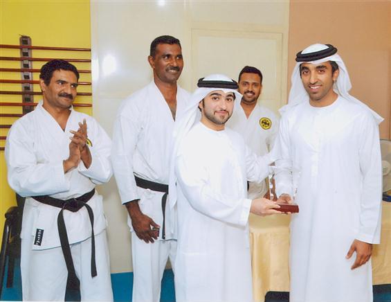 للمركز الأحزمة الملونة، وقدم بدر زيد الشحي هدية تذكارية، باسم نادي الشباب للكاراتيه