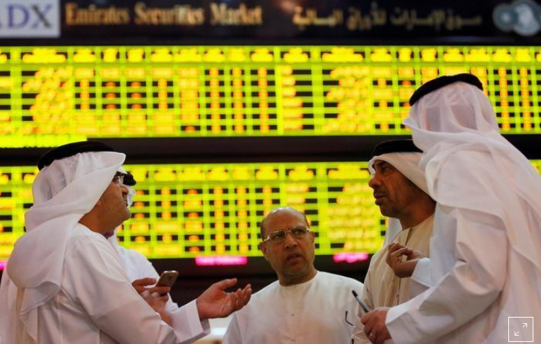 أنعشت قفزة لأسهم جي.إف.إتش المالية بورصة دبي، بينما هبطت أسهم البنوك السعودية للجلسة الثانية بسبب القلق بشأن التزاماتها المتعلقة بالزكاة.