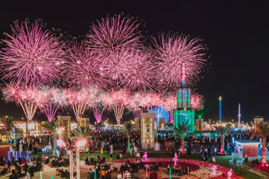 كما شهدت إمارة رأس الخيمة عروضاً مماثلة بالنوافير والألعاب النارية.